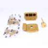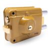 Cerradura para puerta exterior, de madera y/o metal, con acabado metálico, 03 golpes y 2 pivotes de acero sólido. Incluye tornillos, placa de fijación y canastilla.
