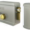 Cerradura de sobreponer con mecanismo eléctrico de doble bobina de 12V y 1.2 A con accionamiento interno sólo con la llave